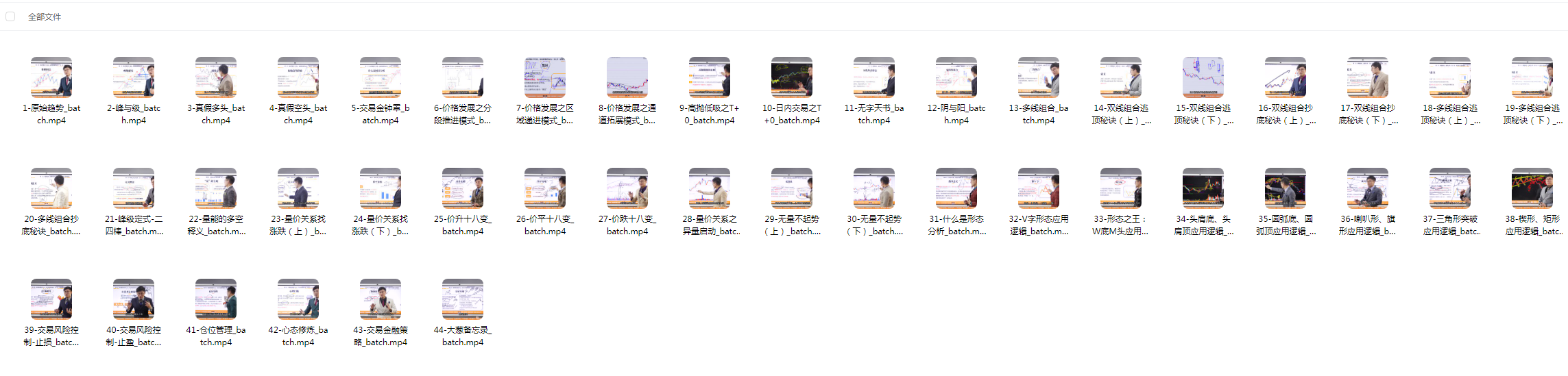 吴大葱图胜千言峰级交易技术课程,峰级实战交易系统课程,咖米峰级VIP社区精品课程【120集】. 目录: 1.峰级交易逻辑九大定式 2.吴大葱:峰级交易系统(高阶)【25集] 3.峰级交易技术区别九大定式 4.图胜千言峰级技术课 4.吴大葱:峰级交易技术[44集] 5.咖米峰级VIP社区精品课程[120集) 6.王韬溢:峰级实战学堂[17集] 7.图胜千言:峰级技术分析课[47集] 8.王韬溢峰级实战学堂 9.吴大葱精选武器库 资源下载下载价格28 积分VIP免费立即购买目前永久VIP仅22元,免费下载全站资源! 0 吴大葱